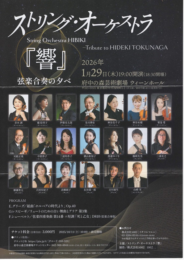 ムジカーザ P.黒澤あみ 1/29(木) ストリング・オーケストラ「響」 Vn青木調ほか