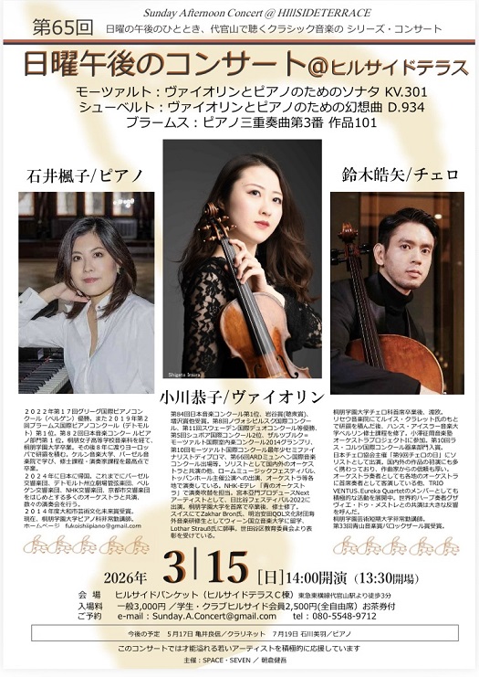 3/15(日) 2pm Vn.小川恭子 Vc.鈴木皓矢
