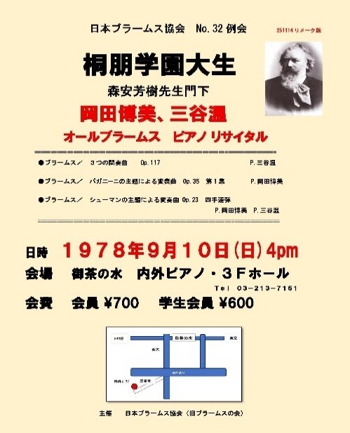 「ブラームスの会」の演奏会が会員向けの第○○回音楽会と主催公演にあたる